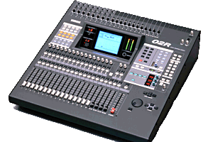 auxiliares. Oferece recursos que antes só estavam disponíveis em sistemas sofisticadíssimos, como automação em tempo-real, com memorização dos parâmetros de controle de seus compressores e efeitos. Cada canal da mesa possui equalizador paramétrico de 4 bandas, e cada canal de entrada e cada bus de saída possui um limiter/compressor/gate, o que elimina a necessidade de diversos equipamentos externos. Além disso, contém dois processadores de efeitos (DSP) internos e dois retornos de efeitos em stereo. A automação do processo de mixagem é facilitada ainda mais com os faders (de 100 mm) motorizados, que são posicionados automaticamente ao se chamar uma "cena" que está memorizada. Os dois processadores internos de efeitos utilizam o mesmo DSP e algoritmos dos Yamaha ProR3 e REV500, com 64 presets básicos, incluindo diversos efeitos de reverb, delay, chorus, flanger, pitch shift e outros, como simulador de amplificador de guitarra. A 02R pode receber até 4 placas opcionais, inseridas em slots no seu painel traseiro, para interfaceamento de áudio digital direto com equipamentos TASCAM, ADAT, AES/EBU e Yamaha. E também possui conectores para entrada de sinal de sincronização (SMPTE ou MTC), word clock e conexão da ponte de indicadores de nível (level meter bridge) opcional. Novidades A nova versão 2 da 02R traz diversas melhorias, dentre elas: Modo 24 bits A 02R permite gravar áudio em 24 bits, usando duas trilhas do gravador digital para cada canal de áudio, uma com 16 bits e outra com 8 bits. Num gravador digital de 8 trilhas, por exemplo, pode-se gravar nas trilhas 1 a 4 os 16 bits mais significativos de quatro canais de áudio, e nas trilhas 5 a 8 os oito bits menos significativos desses canais. A principal vantagem de se gravar em 24 bits é o aumento da faixa dinâmica, que melhora a relação sinal ruído, e propicia um maior "headroom", evitando saturação. Surround Pan O recurso de Surround Pan suporta os modos 2+2, 3+1 e 3+2+1 (5.1), sendo ideal para estúdios de produção de surround e DVD. Os buses de 1 a 6 são usados para fazer o panning de surround, e os buses 7 e 8 e o bus stereo podem ser usados normalmente no modo Surround. Input Patching Permite o redirecionamento e arranjo das entradas de áudio, de forma que uma fonte pode ser endereçada a vários canais de entrada. Os buses de saída podem ser direcionados para Tape, para monitoração do bus de saída e sub-grupamento, com equalização. As entradas podem ser redirecionadas para grupar a fonte de material. Controle remoto via MIDI Pode-se usar mensagens MIDI de control change para controlar remotamente os parâmetros da 02R, incluindo os faders, botões ON, EQ, pan, balance e pan de surround. Outros equipamentos podem ser controlados remotamente pela 02R, sendo que existem templates prontos para controlar os equipamentos Yamaha ProMix 01, 02R, 03D, REV500, ProR3, e ainda o Pro Tools (Digidesign), e também equipamentos que reconheçam MMC (MIDI Machine Control). Operação de múltiplas 02R A operação simultânea de várias 02R é simplificada pelos recursos de memorização e recuperação simultânea de cenas (configurações) em todas as mesas acopladas. ESPECIFICAÇÕES TÉCNICAS Conversor A/D: 20 bits linear 64x oversampling; Conversor D/A: 20 bits linear 8x oversampling (stereo out, C-R monitor out); 18 bits linear 8x oversampling (studio monitor out, aux send 1-8); Processamento interno: 32 bits (faixa dinâmica de 192 dB); Taxa de amostragem: interna 44.1 / 48 kHz; externa 32 kHz a 48 kHz; Distorção harmônica THD: < 0,2% (20 Hz a 20 kHz), nas entradas analógicas; Resposta de frequências: 20 Hz a 20 kHz +1 dB, -3 dB Faixa dinâmica: 110 dB (típica) nos conversores D/A (stereo out); 105 dB (típica) A/D + D/A (mic/line in para stereo out); Nível de ruído e hum: -128 dB (EIN) de 20 Hz a 20 kHz; Crosstalk: 70 dB entre canais adjacentes; Memória: 64 cenas; 64 Ch library; 128 EQ library; 128 dynamics library; 18 effects library; 16 automix; Display: LCD iluminado de 320x240 pontos; Dimensões: 663 mm x 222 mm x 685 mm Peso: 30 kg